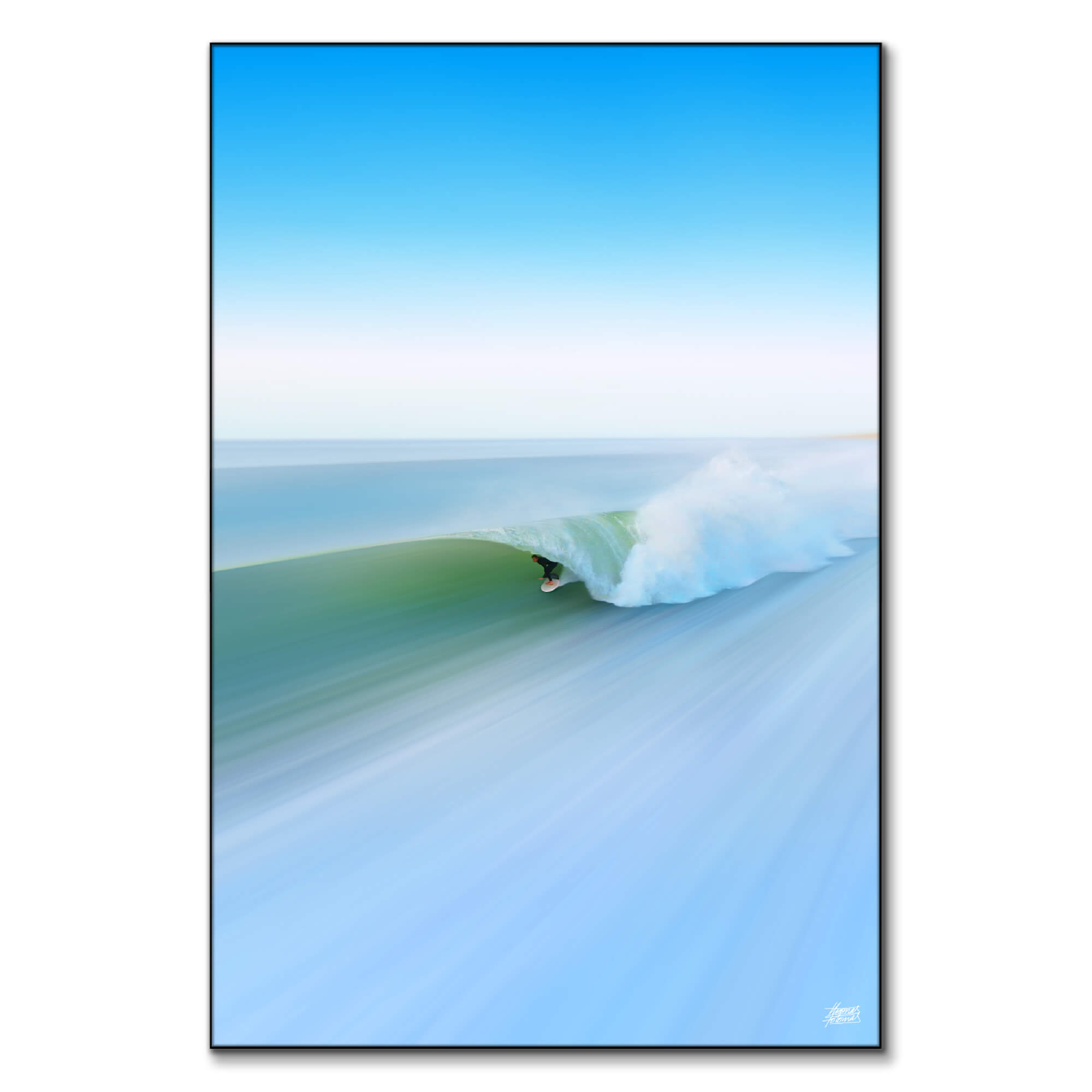 My photos are taken in Landes in Hossegor and are combined with motion blurs to create these unique portraits. Each piece is associated with the harmonious colors of the wild coast.