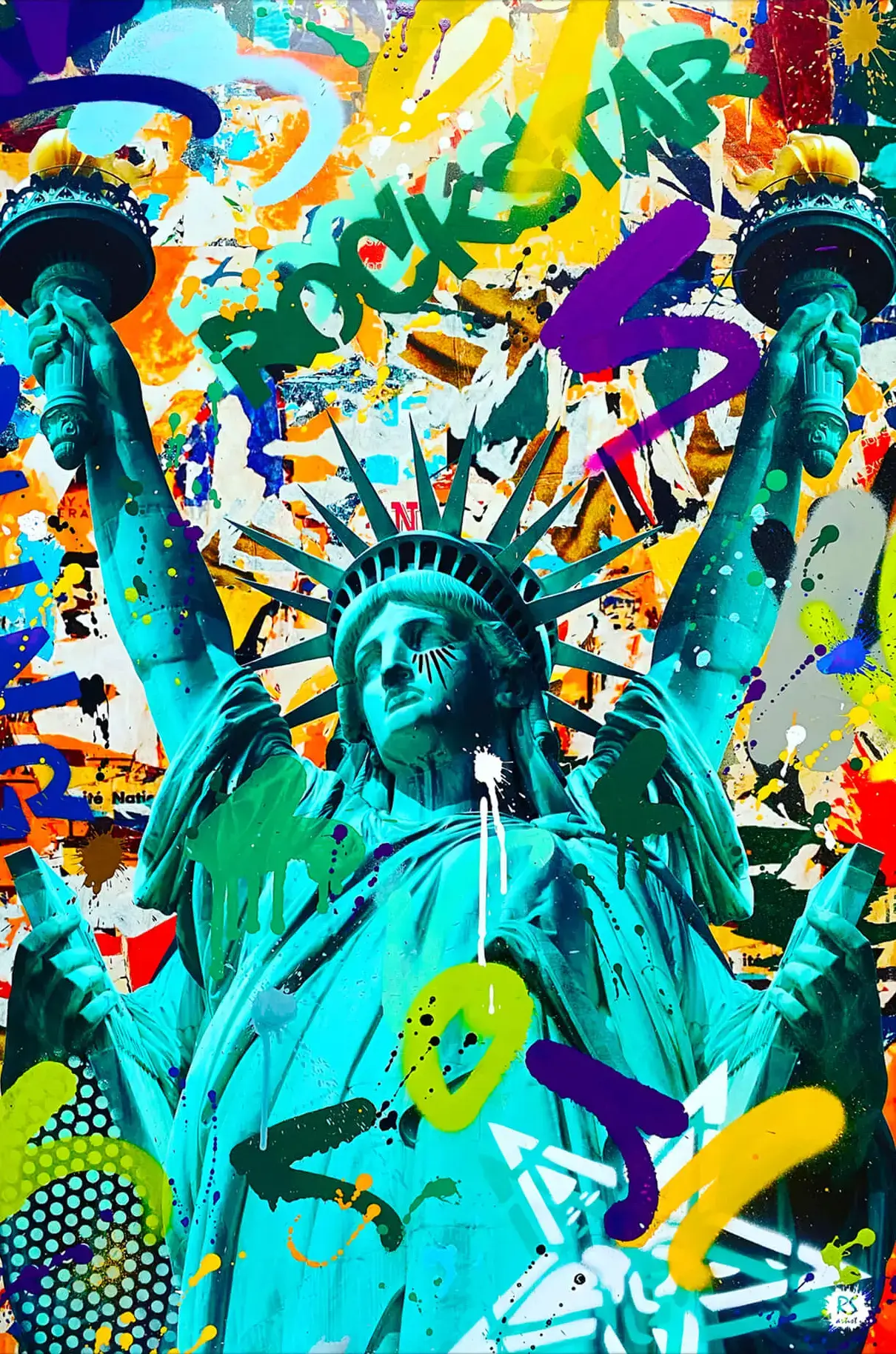 RS Artist is part of this new generation of artists combining both Pop Art and Street Art, delivering works in full colour, a clever mix of performance, strength and life.