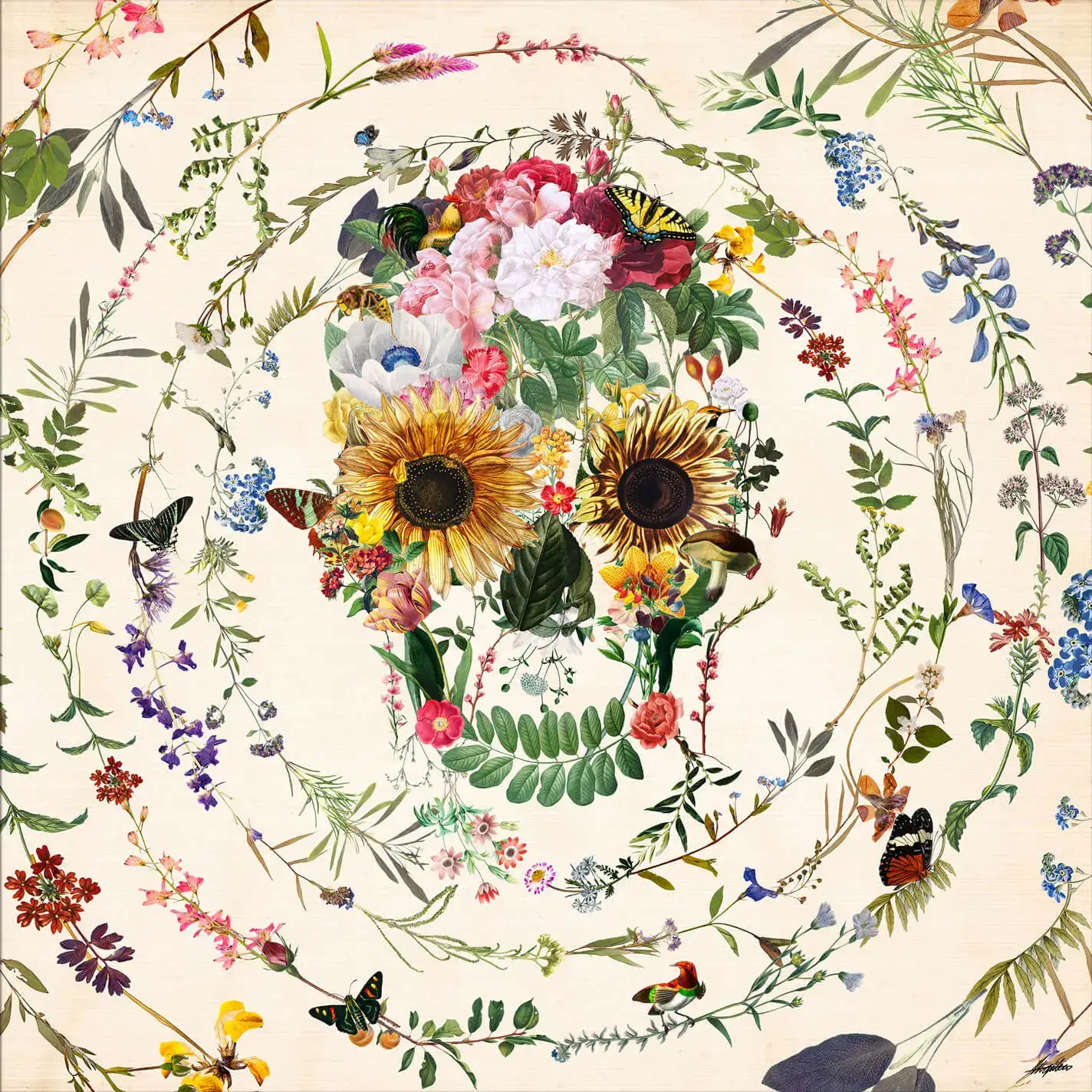 In the warmth of summer, flowers and leaves come together to form a summer botanical skull, a unique creation by Ali Gulec. It’s a natural blend of life, with bright petals and green stems shaping something unexpected.