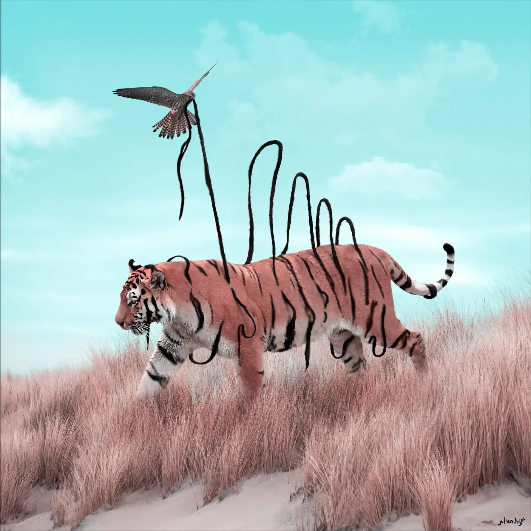 Julien Tabet describes how animals behave when we’re not looking. He’s well known for his unique, surreal, and creative universe. He is a France-based digital artist.