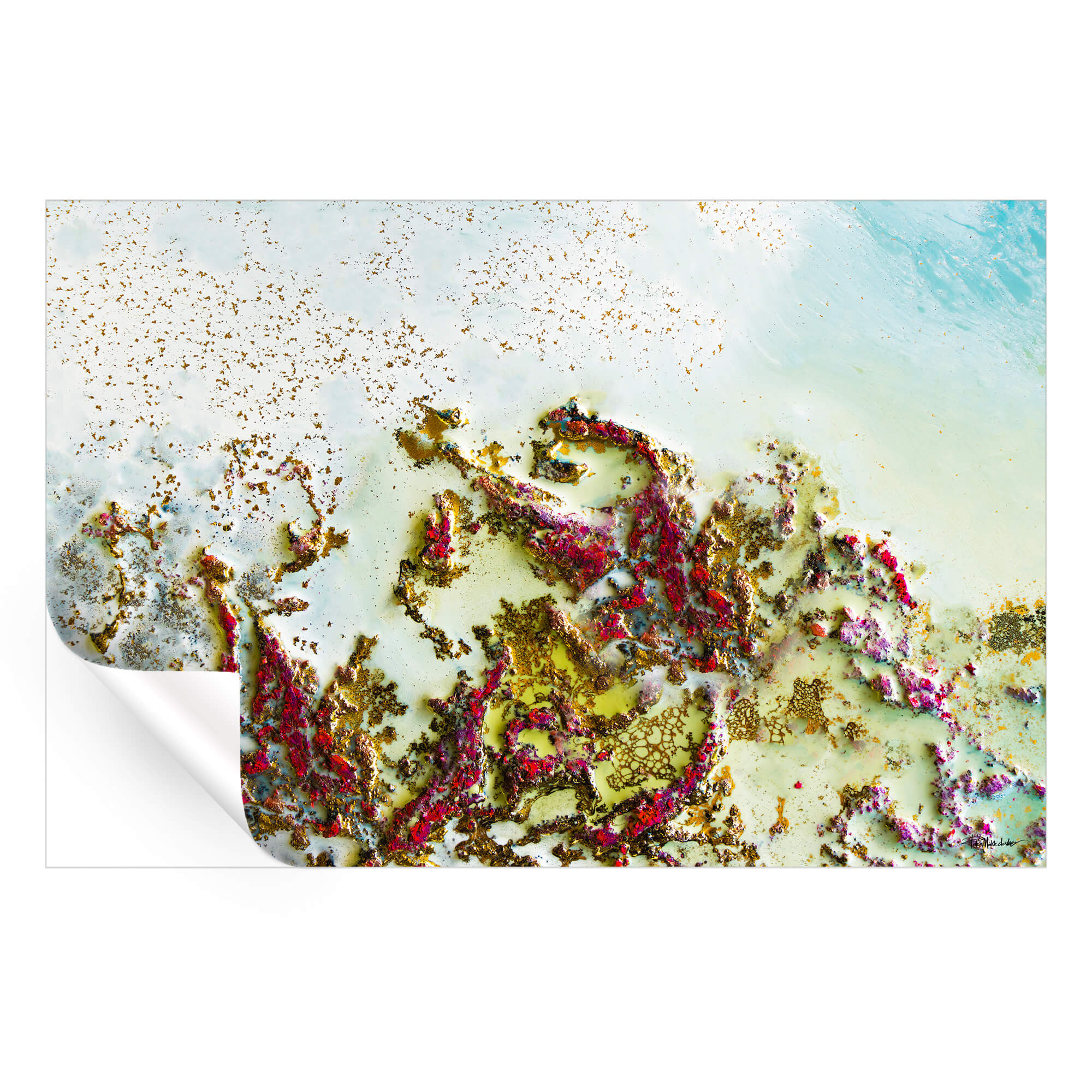 Infuse your space with vibrant energy through this captivating abstract painting. Featuring a mesmerizing blend of bold reds, earthy greens, and shimmering gold tones, this artwork evokes the organic beauty of coral reefs or intricate tidal pools. The textured composition offers a striking visual that draws the viewer in, inviting exploration of its vivid colors and flowing patterns. Perfect for modern, eclectic, or nature-inspired interiors, this piece makes a bold statement while maintaining a connection to the natural world.