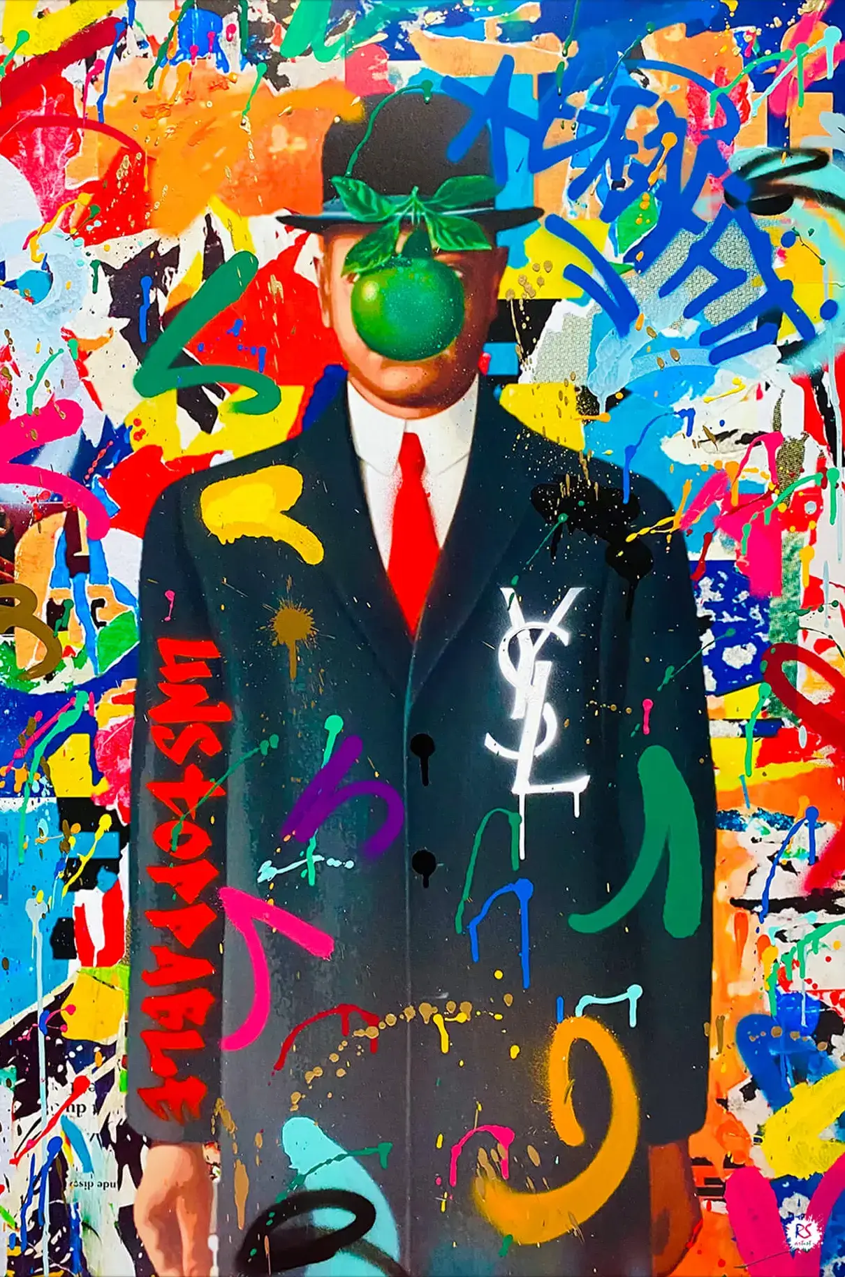 RS Artist is part of this new generation of artists combining both Pop Art and Street Art, delivering works in full colour, a clever mix of performance, strength and life.