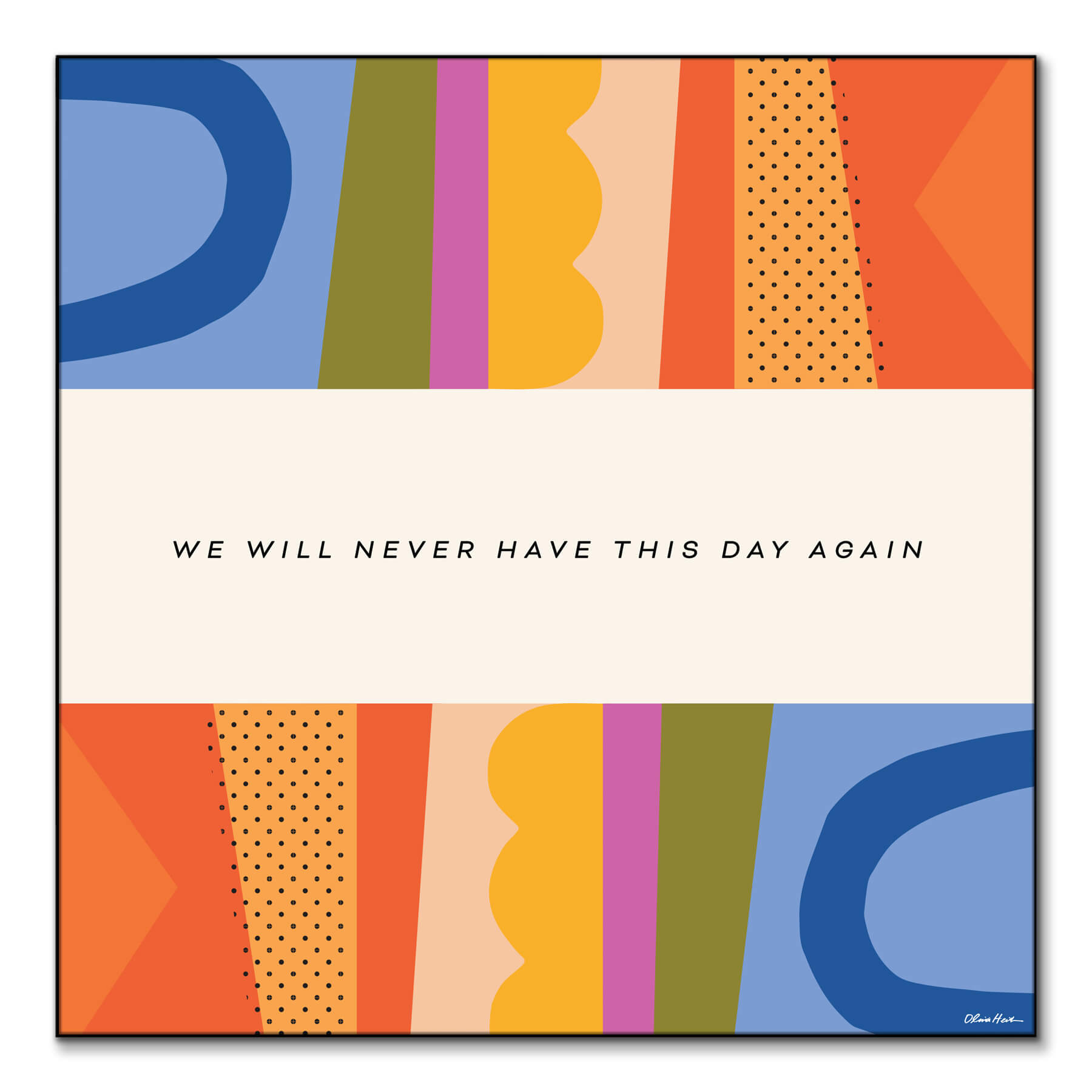 A mosaic of vibrant colors and patterns leaps forth from “We Will Never Have This Day Again,” a poignant reminder to cherish each moment. The artwork consists of various abstract elements, each contributing to a lively visual symphony, which underscores the unique beauty of the present. Olivia Herrick masterfully blends the exuberance of color with the transience of time in this inspiring piece.