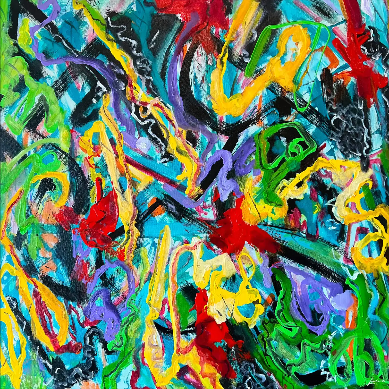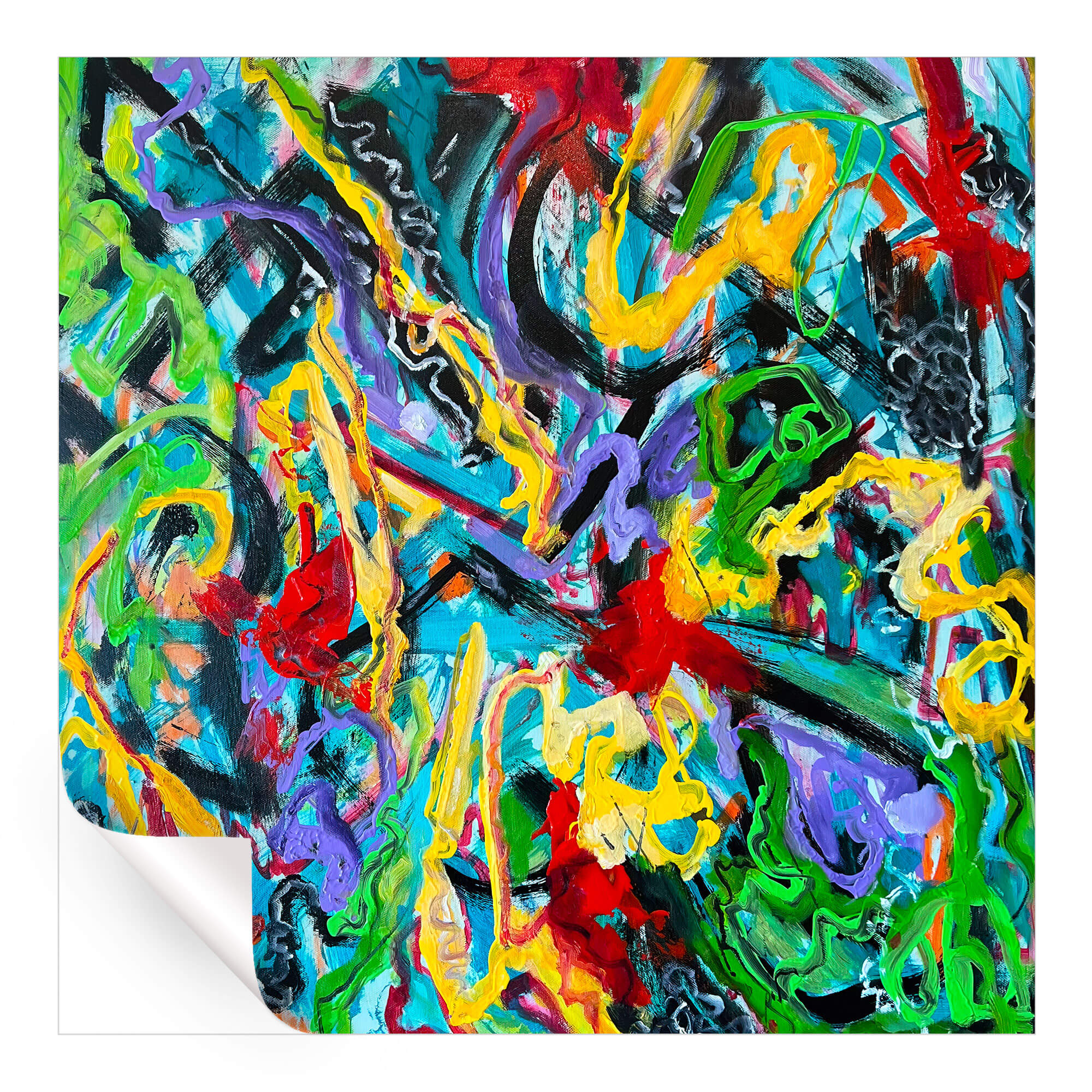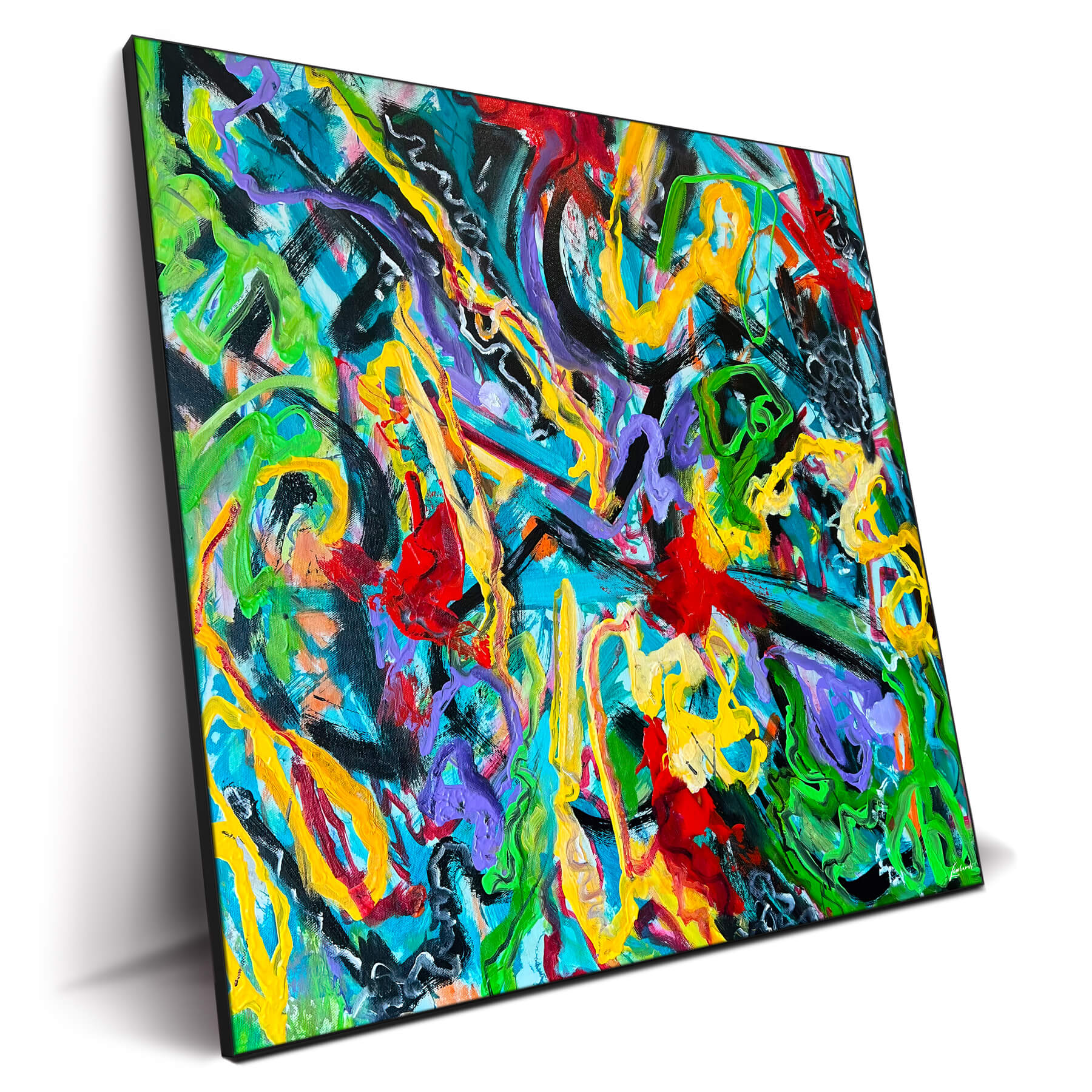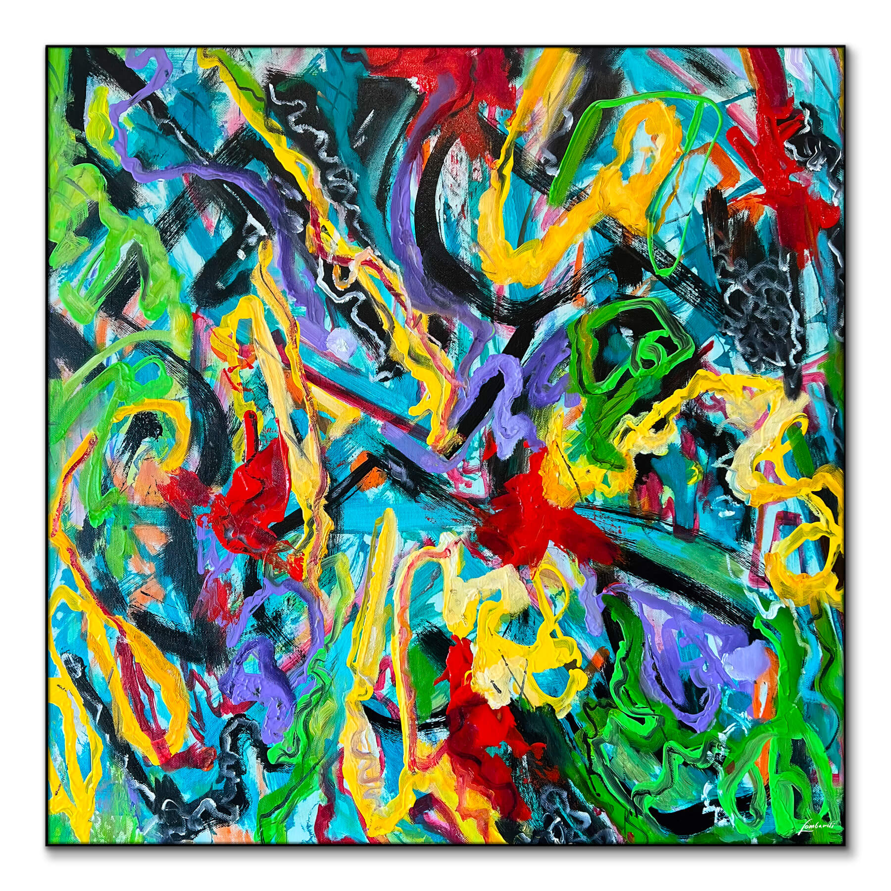 Each splash of paint is a plot twist, a turn in the journey, creating a wild and exuberant scene. The artwork is a visual novel, each brushstroke a word, each color a sentence in the energetic story of abstract expression.
