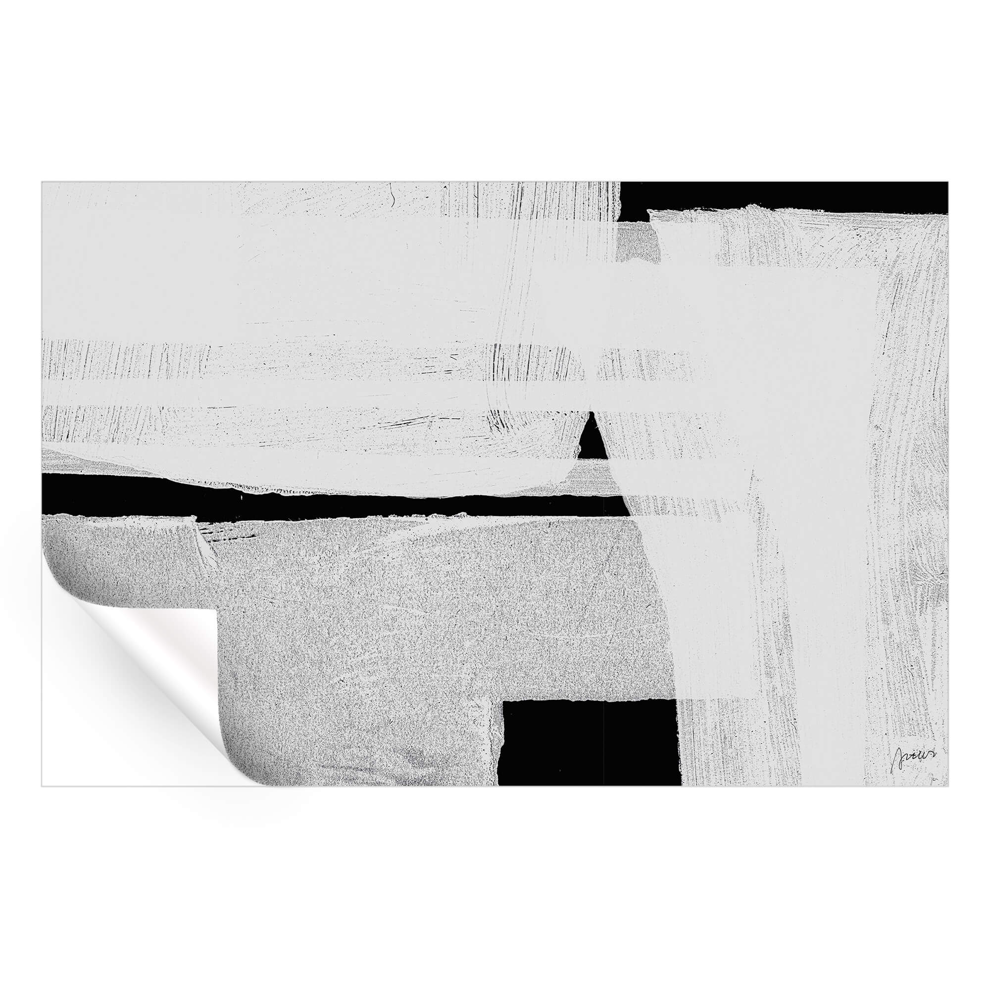 Black and white tones meet bold brushwork in this modern abstract design. Broad strokes of white paint stretch across a dark ground, leaving textured edges and soft variations that feel organic and rhythmic. The interplay between rough and smooth gives it both tension and calm—a visual conversation between light and shadow.